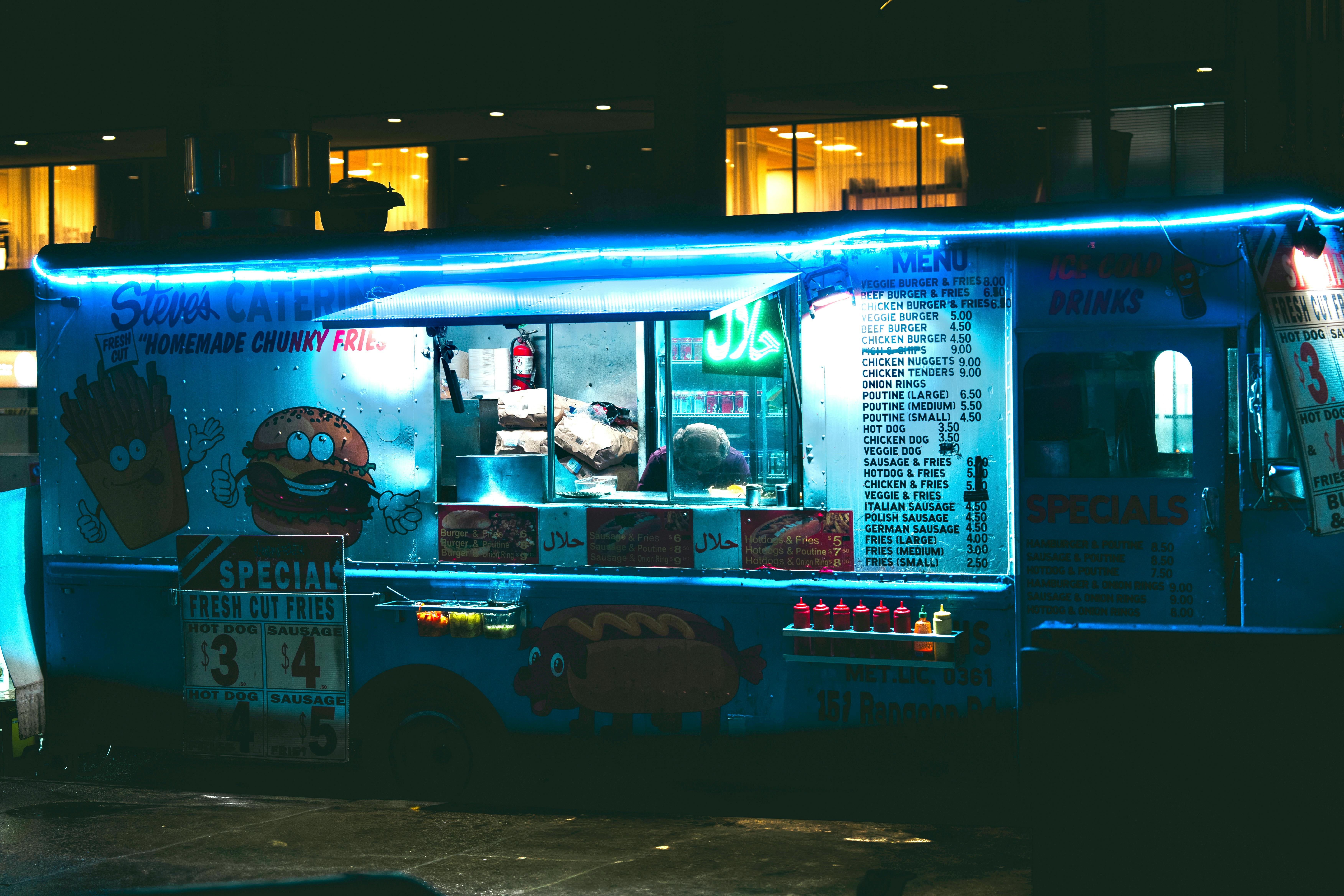 Hijyen standartlarına tam uyumlu, endüstriyel mutfak donanımlı mobil restoranlar.